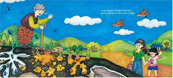 세대를 이어가며 서로를 챙기는 모습과 다음 세대에게 힘을 주는 모습이 그림으로 잘 표현이 되어 있고, 선명한 색상과 종이의 질감을 잘 표현하여 보는 즐거음이 있다.