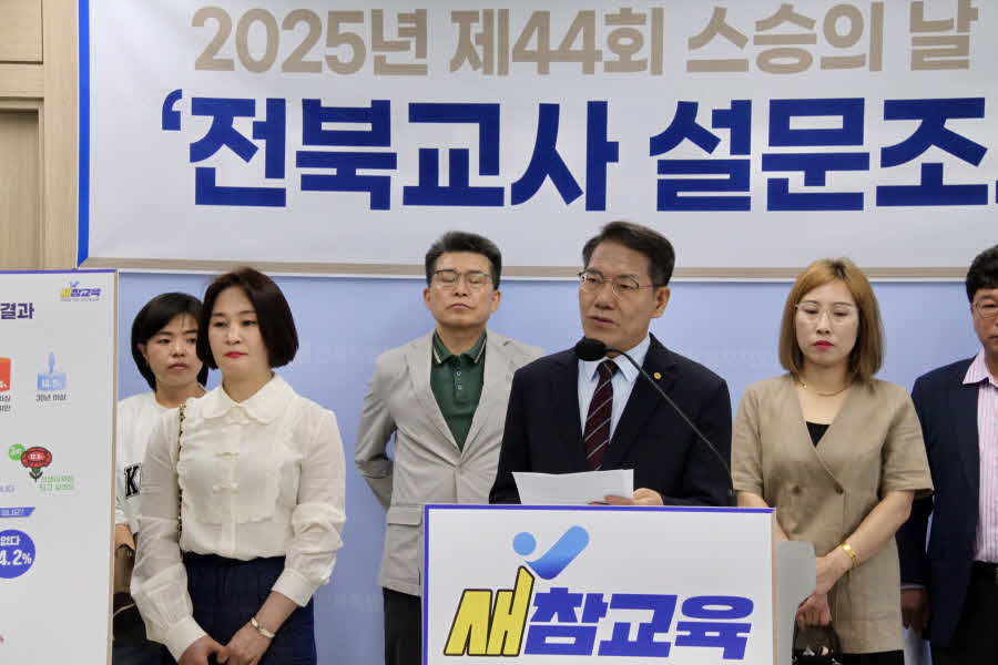2025년 제44회 스승의 날을 맞아 새길을 여는 참교육포럼(이하 새참교육. 대표 노병섭)은 전북 지역 교사 303명을 대상으로 설문조사를 실시하고, 그 결과를 5월 14일 전북교육청 기자실에서 발표했다. 이번 조사는 교육 현장의 실태와 교사들의 현실적 목소리를 드러내기 위한 목적이다.