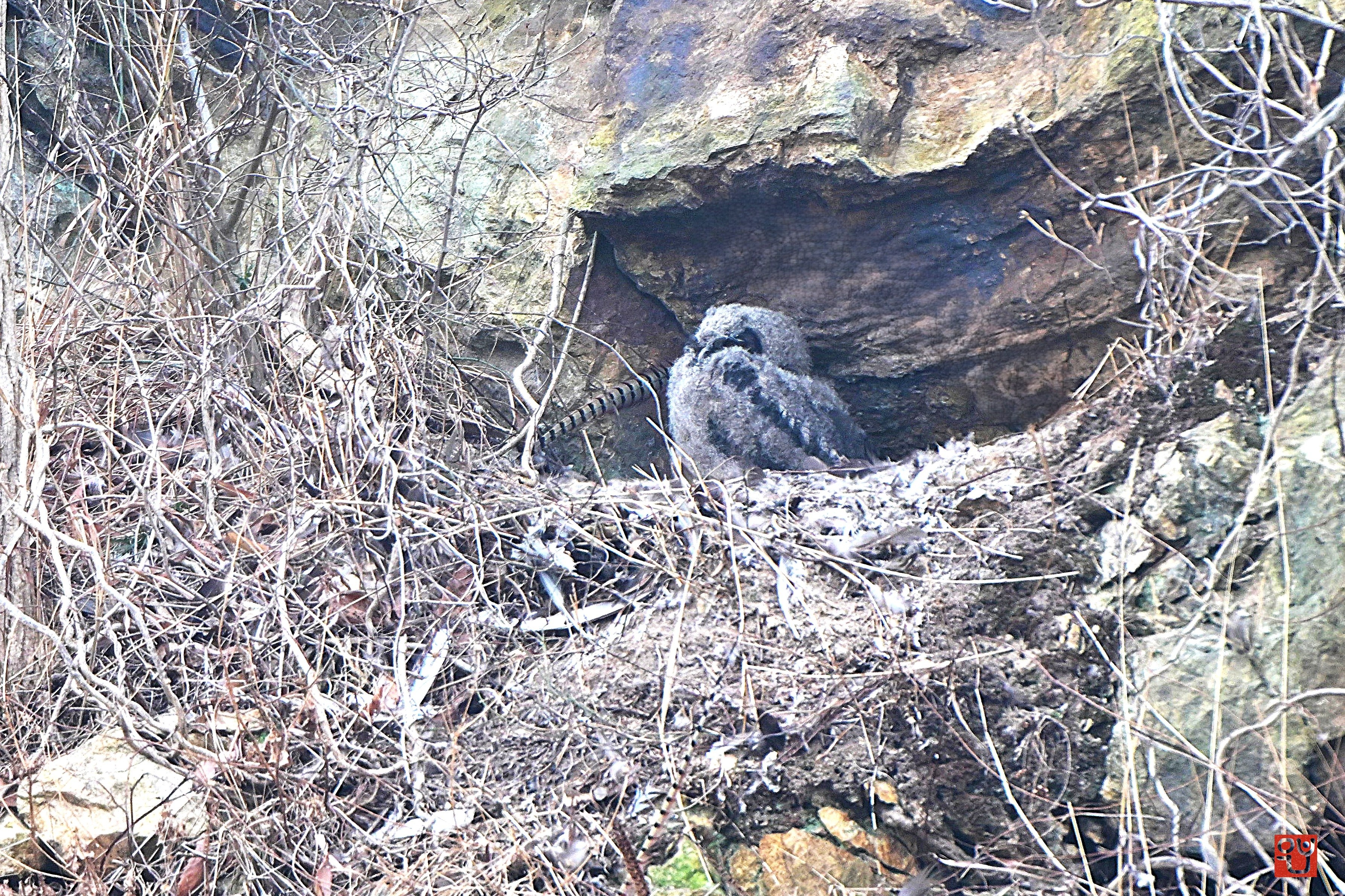 우리고장 계화도 돈지 마을 암벽에 수리부엉이는 육추에 들어간지 벌써 한달이 넘었다. 지금은 새끼를 어미가 늘상 품고 있는 것이 아니라 부근에서 지키고 있다.